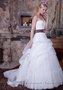 Дизайнерское платье с бархатным поясом контрастного цвета придётся по душе самым нежным и романтичным натурам. Декольтированный корсет с тонкой драпировкой подчёркивает соблазнительные изгибы фигуры. Пышная юбка с объёмными сборками оригинальной формы придаёт образу воздушность. Наряд дополнен кокетливым шлейфом. Вы будете неотразимы!