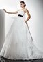 Роскошное свадебное платье от именитого бренда Amour Bridal порадует Вас контрастным сочетанием цветов: широкий пояс эффектно подчёркивает талию. Пышная юбка со сборками оригинальной формы придаёт образу неотразимость и торжественность. Эта декольтированная модель дополнена кокетливым шлейфом. Наряд привлекает внимание к бюсту.