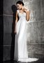 Легкое шифоновое платье в стиле Ампир. Красивый густо драпированный лиф украшает расшитое жемчугом и бисером декольте. Аккуратные лямки выполнены в одной композиции с лифом. И в завершении образа небольшой аккуратный шлейф, который легко подбирается с помощью петельки.