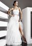 Элегантное платье с пышной юбкой с разрезом. Корсет модели слегка задрапирован тонкой тканью. Линия талии эффектно подчёркнута широким декоративным поясом из атласной ленты контрастного цвета с бантиком. Пышная юбка оригинального покроя с высоким разрезом и шлейфом предоставляет невесте прекрасную возможность похвастаться своими стройными ножками.