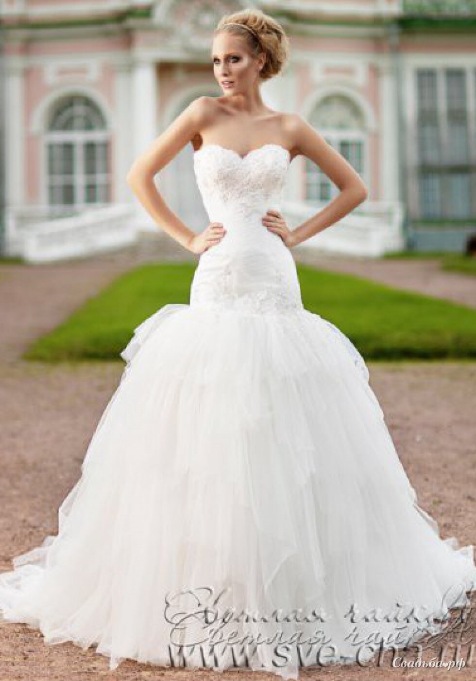 Шикарная модель длинного свадебного платья в стиле "русалка". Силуэтная модель, подчеркнет все достоинства фигуры невесты и скроет недостатки благодаря плотному качественному корсету. Весь верх платья задрапирован нежным легким фатином. На лифе и в месте перехода корсета в юбку - прекрасное дорогое кордовое кружево, расшитое серебряным бисером, стеклом и маленькими пайетками со стеклярусом.