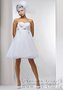 Очаровательное короткое свадебное пышное платье. Красивый кружевной лиф, выполненный в форме сердца, с атласным поясом сделает хороший акцент на ваши достоинства, а нежная легкая фатиновая юбка, оформленная клиньями, придаст легкости и без того невинному образу.