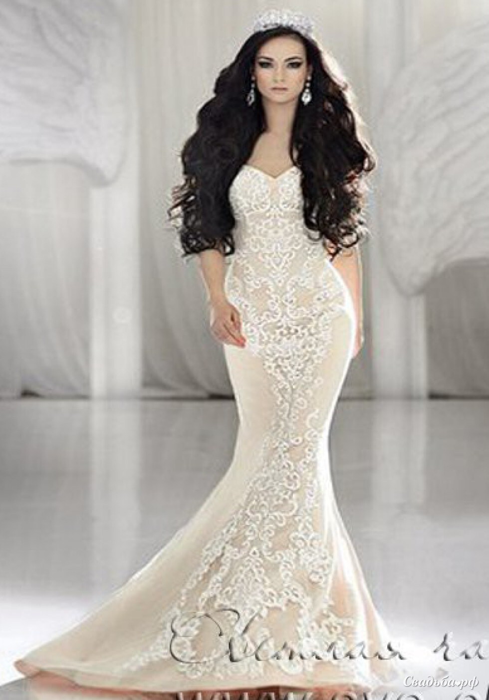 Фантастическое длинное расшитое кружевное платье со шлейфом силуэта рыбка/русалка. Эта модель платья для тех, кто хочет роскоши и утонченности в образе! Прекрасно подчеркивает фигуру, а открытый верх платья придает особый шарм и изысканность.