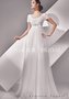 Легкое нежное платье в греческом стиле, но из нестандартной для этого стиля ткани. Греческим здесь можно назвать силуэт, когда юбка струиться из под груди. Но эта юбка не из шифона, а из потрясающе-мягкого и легкого французского фатина. Верх же выполнен из кружева, очень красивый вырез, романтичные рукавчики. Линия под грудью подчеркнута аккуратной вышивкой. В этом платье очень легко и удобно, оно никак не сковывает движения. Отличный вариант для невест в положении, так как на животик абсолютно ничего не давит, юбка идет сразу из под груди, а сама грудь хорошо зафиксирована корсетом. Все смотрится очень гармонично и легко.
