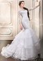 Шикарное платье для невесты, которая в этот день хочет выглядеть настоящей принцессой. Платье в стиле рыбка/русалочка с длинными кружевными расшитыми рукавами подчеркнет индивидуальность невесты, и в то же время придаст элегантности образу невесты. А шикарная юбка из нескольких ярусов оставит незабываемое впечатление от общего образа невесты.