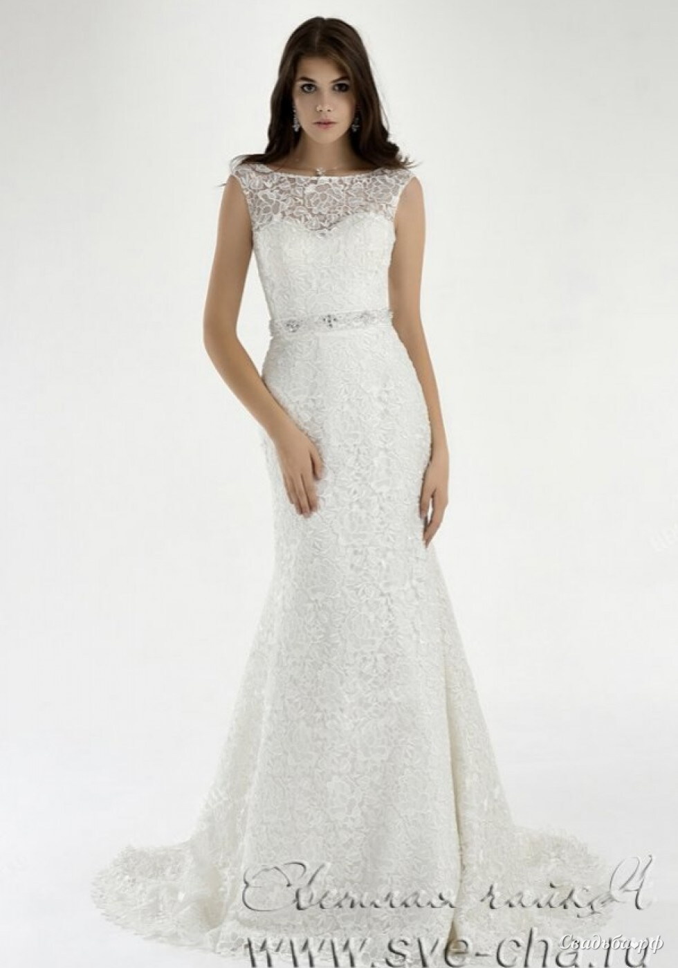 Кружевное свадебное платье силуэта Рыбки со шлейфом