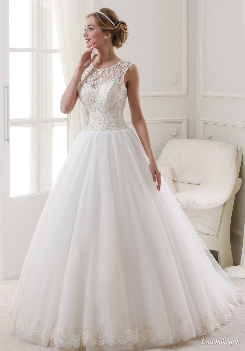 Свадебное платье с кружевным корсетом и юбкой из фатина. Роскошью и завершением неповторимого образа служит кружево, украшающее подол воздушной юбки.