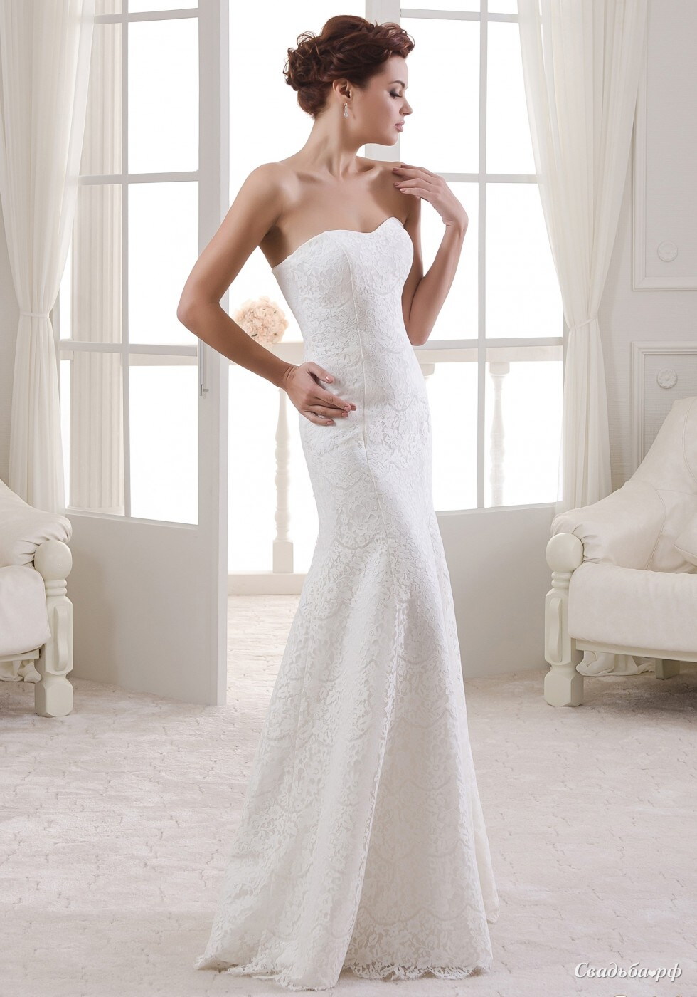 Свадебное силуэтное платье "годе" повторит четкий контур идеальной фигуры и подчеркнет все ее достоинства, а нежное кружево, из которого выполнено данное платье придаст великолепие и дороговизну.