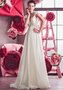 Нежное свадебное платье в греческом стиле. Зона декольте обрамлена фигурным лифом и полупрозрачными бретелями, ширину которых невеста может регулировать по своему желанию. Искусная рельефная вышивка расположилась под грудью, на границе лифа и юбки. Сама же юбка мягко струится вдоль фигуры невесты и превращается в небольшой шлейф.