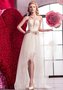 Роскошное свадебное платье-трансформер создано для настоящих принцесс. Элегантный корсет с открытой зоной декольте и полупрозрачной вставкой смотрится эффектно. Крупный цветок на талии придаёт наряду особый шик. Короткая юбочка дополнена накидкой со шлейфом из лёгкой ткани. В этом платье вы сможете продемонстрировать прекрасные ножки.