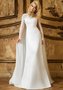 Жемчуг – это оригинальное свадебное платье-трансформер. Элегантное платье с необыкновенно нежной накидкой из паутинки дополнено шикарным поясом с ручной вышивкой. Облегающий наряд из благородного атласа подчёркивает женственные изгибы фигуры. Длинная юбка постепенно расширяется к полу. Стильная модель для требовательной невесты.