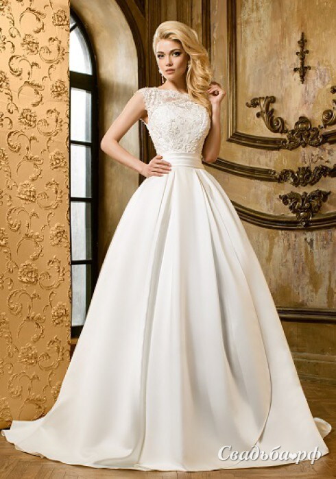 Малахит - на первый взгляд классическое и традиционное свадебное платье привлечет Ваше внимание оригинальным вырезом на спинке и такой необычной деталью, как карманы на юбке. Вставка на груди выполнена из кружева. Корсет с широким поясом подчёркивает достоинства фигуры. Пышная юбка дополнена шлейфом. Варианты: органза/атлас.