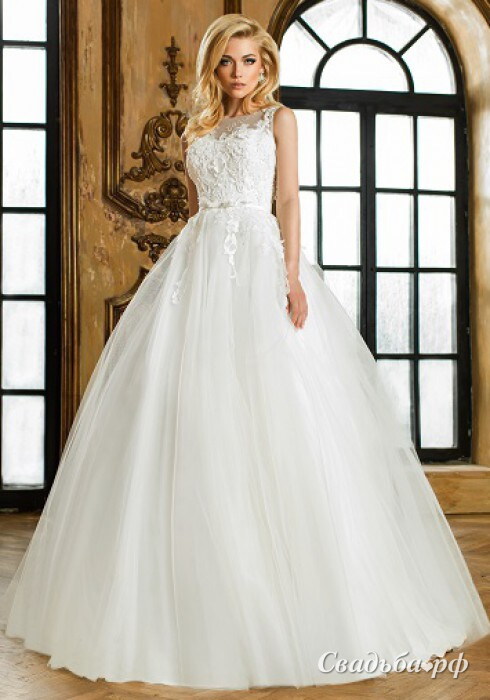 Лунный камень - бесконечно романтичное свадебное платье, созданное специально для невест, мечтающих о сказочной свадьбе. Яркой деталью наряда служит кружевная полупрозрачная спинка с цветочными узорами ручной работы. Талия подчёркнута тонким пояском. Пышная фатиновая юбка со шлейфом придаёт образу свежесть и невесомость.