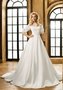 Обсидиан – это креативное свадебное платье в ретро-стиле, созданное для самых смелых и неординарных натур. Кружевная вставка на груди гармонично сочетается с рукавами-фонариками. Талия подчёркнута широким поясом. Длинная юбка с мягкими складками переходит в шлейф. В таком роскошном платье наряде Вы будете подобны королеве!