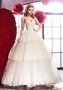 Шикарное свадебное платье в «бальном» стиле. Многослойная пышная юбка из фатина и кружева завершается небольшим полукруглым шлейфом. Шнуровка на спине выгодно подчёркивает линию талии.
