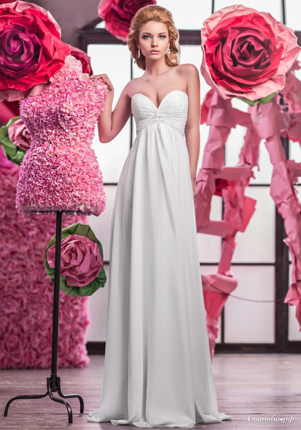 Силуэт этого платья лёгкий и струящийся. Сдержанная роскошь изысканных деталей делает этот образ поистине изящным.