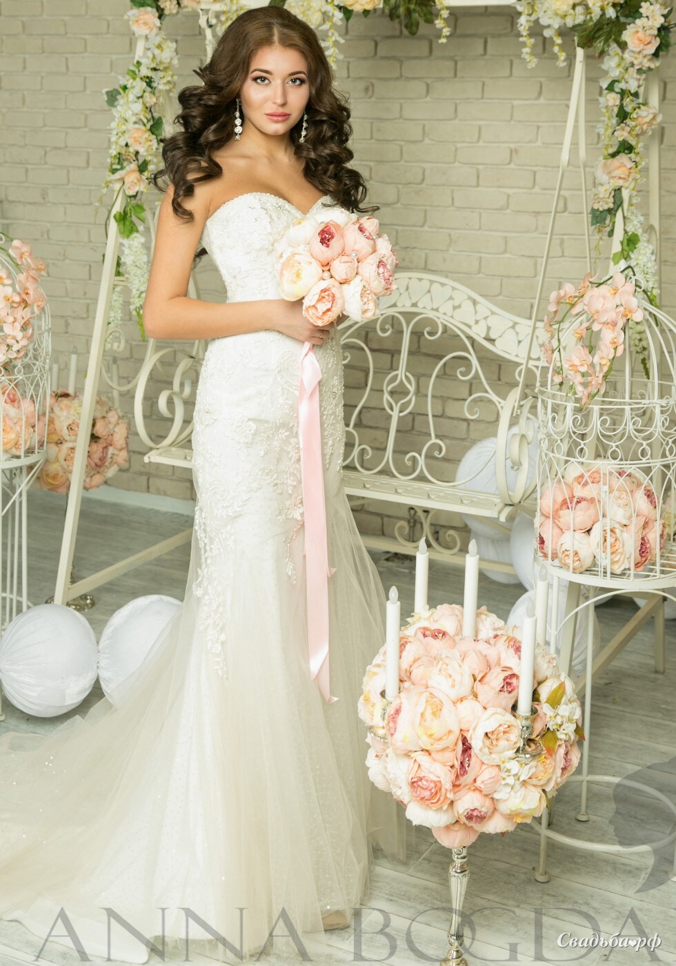 Кружевное свадебное платье силуэта русалка расшито вручную