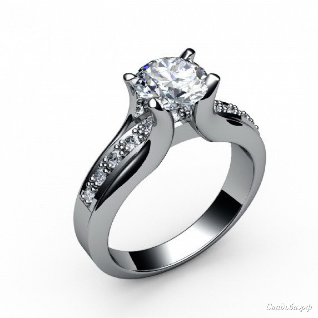 Массивное помолвочное кольцо выполнено из белого золота. Широкий ободок усыпан небольшими бриллиантами безупречной огранки. Центральным украшением всего кольца является огромный бриллиант, надёжно зафиксированный в искусной оправе. Роскошное кольцо для лучшей женщины на свете!