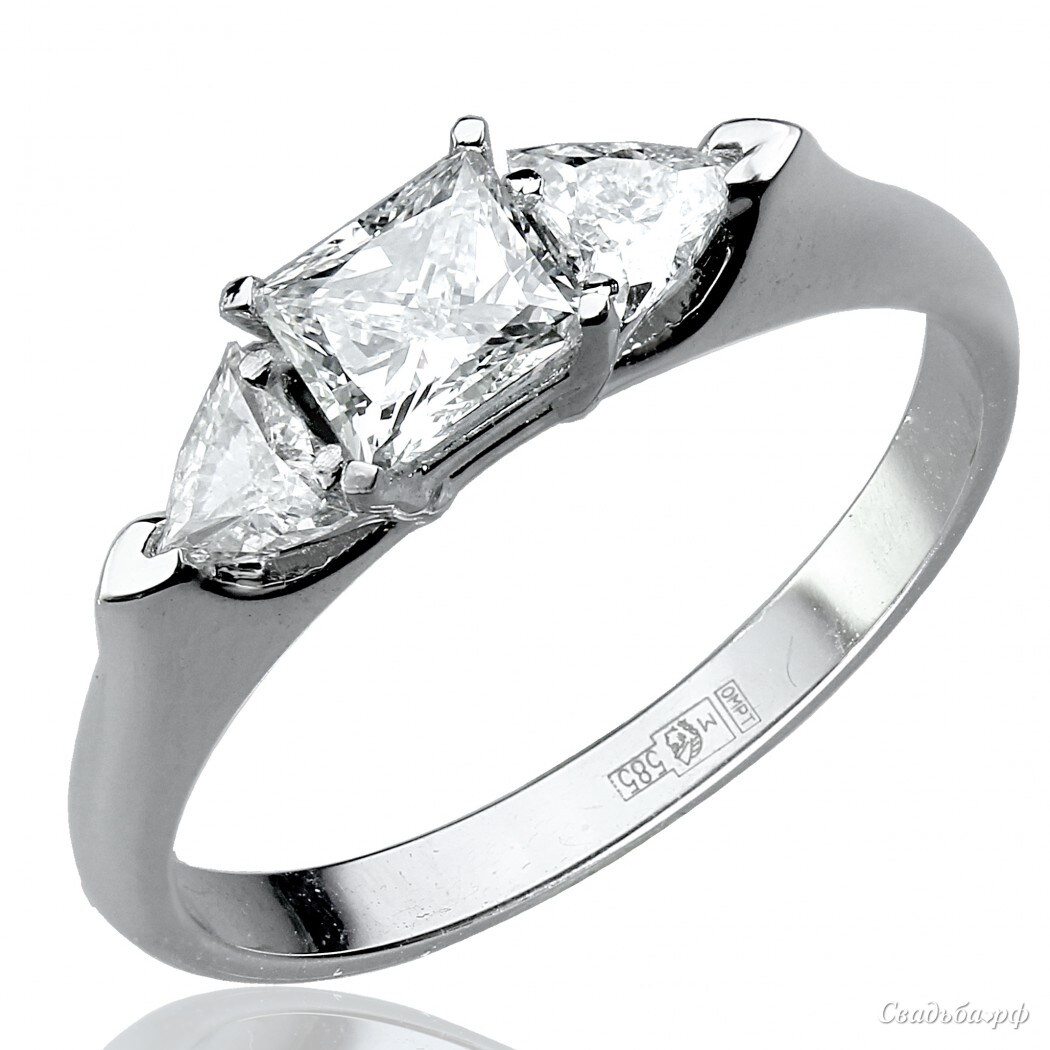 Помолвочное колечко оригинального дизайна выполнено из белого золота 585 пробы лучшими ювелирами России. Матовая поверхность украшения гармонично сочетается с тремя ослепительными бриллиантами: 1 камень кв.57 -0,51 3/3 и 2 камня тр .57 -0,2 3/4. Такое эффектное колечко растопит сердце даже самой гордой красавицы. Стильно и изысканно.