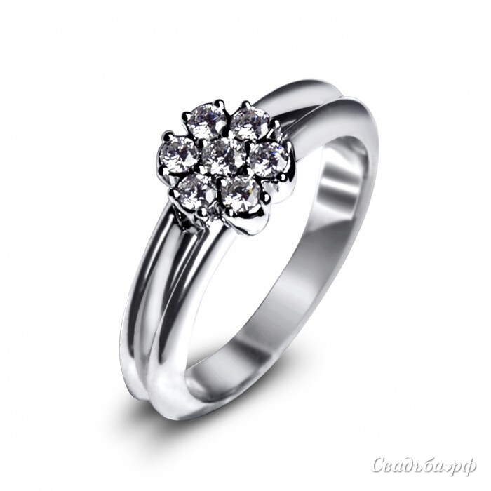 Великолепное помолвочное кольцо представлено лучшими ювелирами России из белого золота. Сверкающий ободок с выступающими краями дополнен оправой в форме цветка. Каждый лепесток и серединка бутона – это сверкающие бриллианты чистейшей огранки. Кольцо может быть выполнено из желтого и белого золота, а также изменено по желанию заказчика.