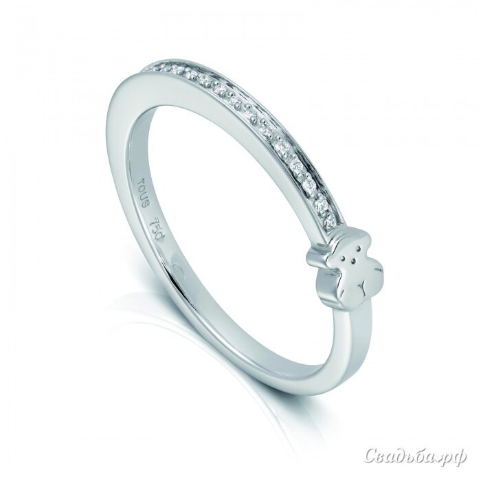 Очаровательное обручальное колечко выполнено лучшими ювелирами Испании из белого золота высочайшей пробы. Изящный ободок украшен вставкой в форме медвежонка. С одной стороны от этого декора расположена дорожка чистейших бриллиантов. Кольцо смотрится романтично и очень мило. Изделие будет сочетаться с другими Вашими украшениями.