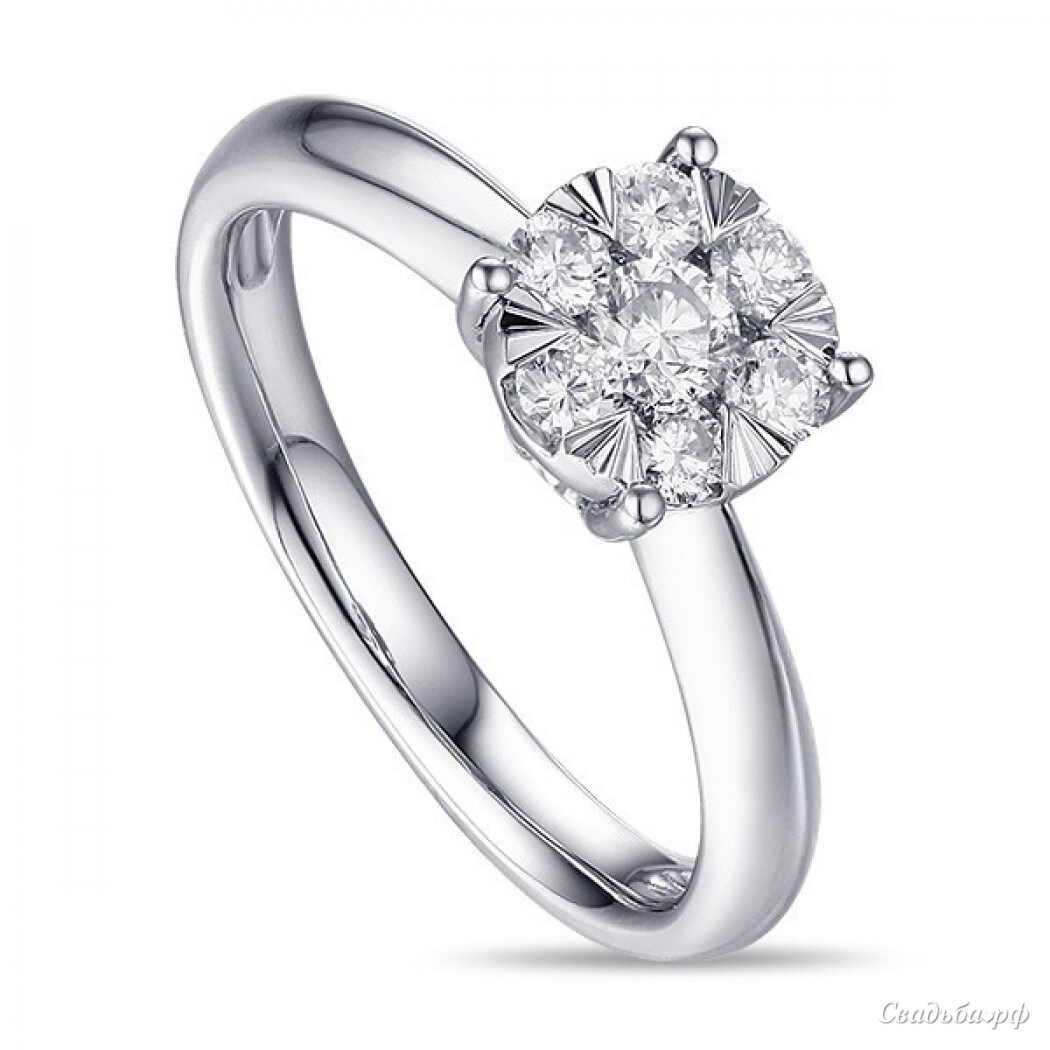 Помолвочное кольцо из белого золота высочайше пробы не оставит равнодушной даже самую требовательную красавицу. Изящный ободок с округлой вставкой идеально садится на пальчик. Сверкающие бриллианты безупречной огранки надёжно зафиксированы в оправе.