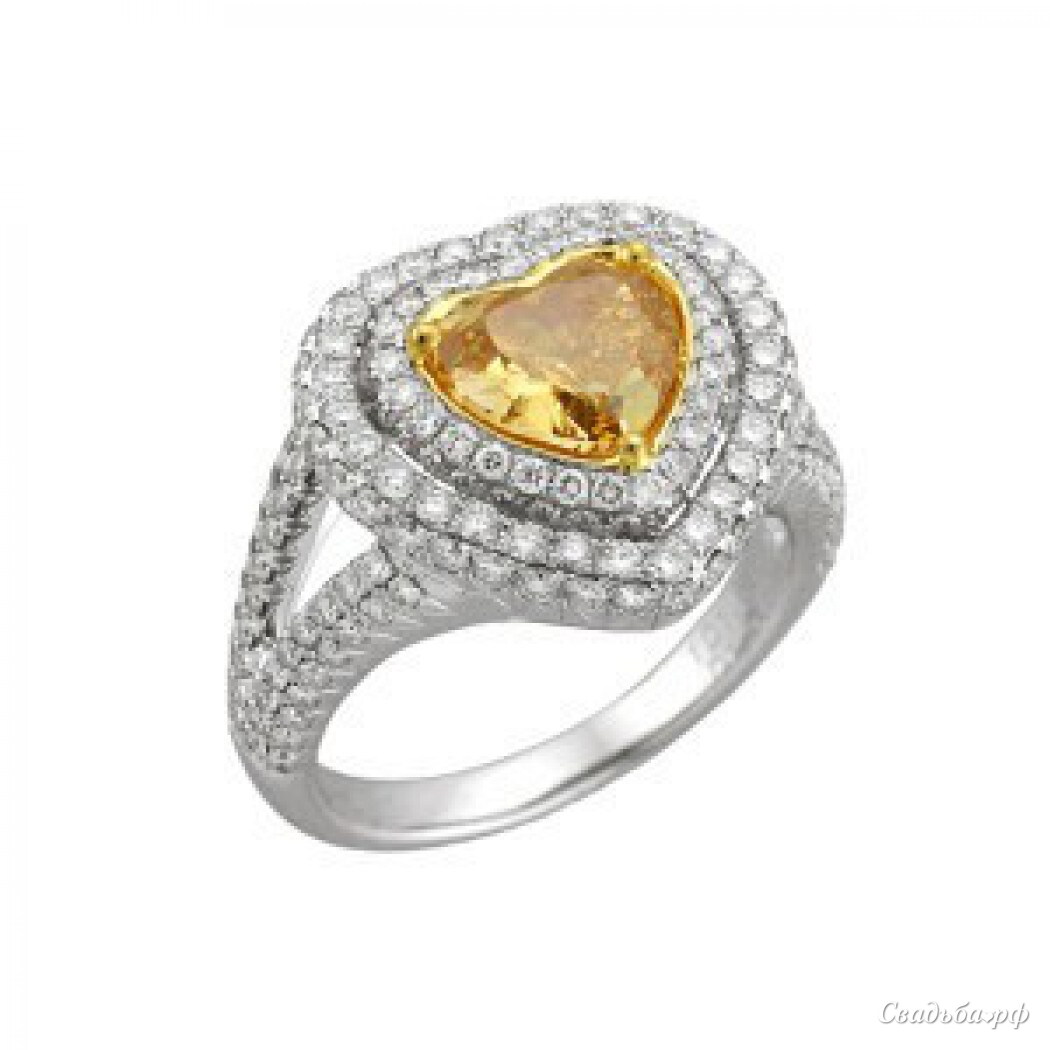 Волшебное помолвочное кольцо из белого золота с желтым бриллиантом - сердцем. Такая красота не оставит равнодушной - ни одну девушку!