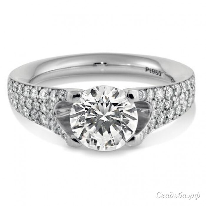 Потрясающее помолвочное кольцо из белого золота придётся по вкусу даже самой притязательной невесте. Ювелирное изделие украшено одним крупным бриллиантом безупречной огранки в центре и целой россыпью драгоценных камней меньшего размера. С такой ослепительной моделью вы всегда будете в центре всеобщего внимания.