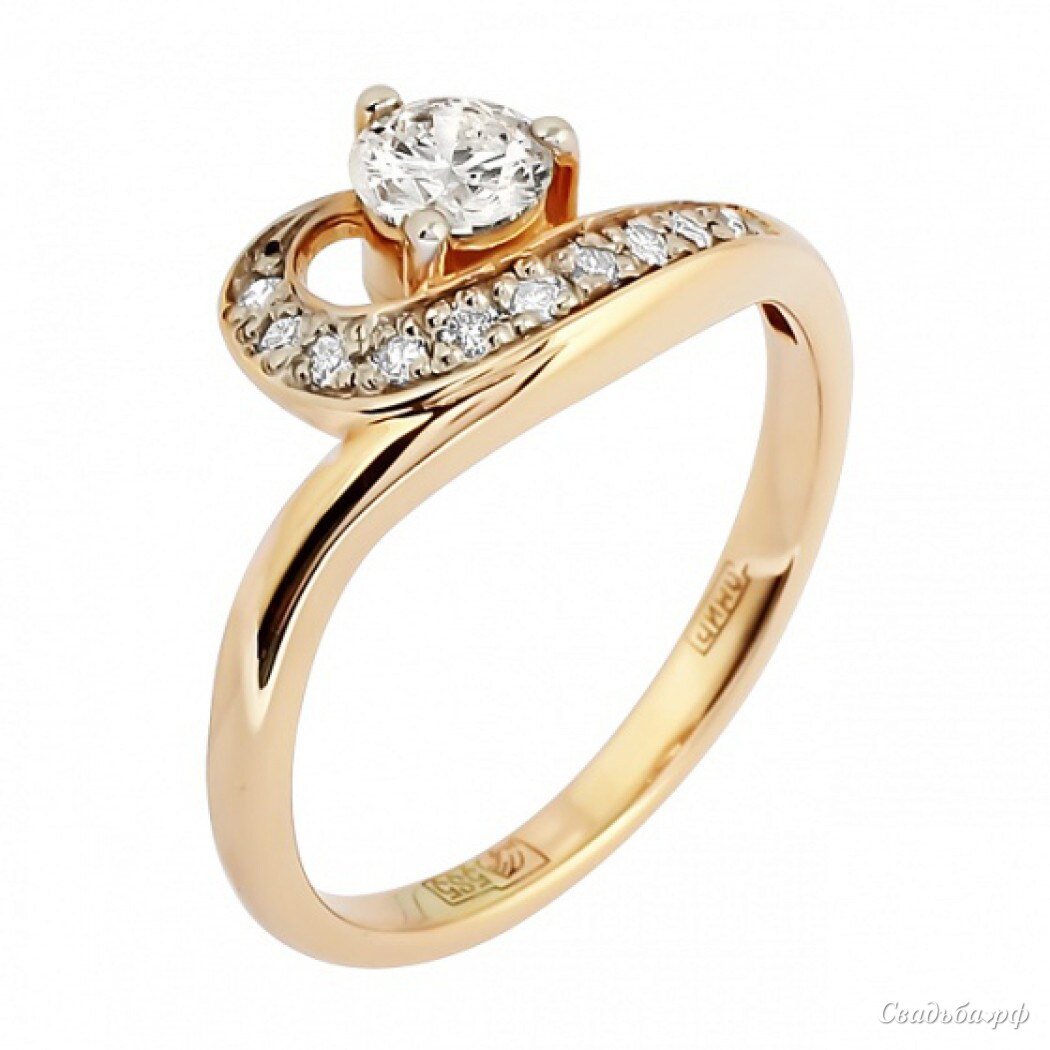 Эффектное помолвочное кольцо понравится даже самой требовательной красавице. Изящный ободок дополнен затейливой вставкой. Целая россыпь сверкающих бриллиантов обрамляет драгоценный камень большего размера. Такое кольцо из высококачественного красного золота 585 пробы будет радовать Вас всю жизнь, ведь такое изделие не потускнеет.