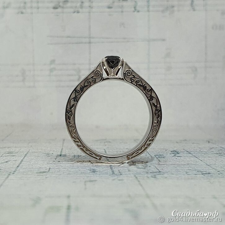Кольцо с черным бриллиантом, кольцо в подарок, необычное кольцо