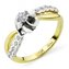 Оригинальное помолвочное кольцо создано отечественными ювелирами для самых стильных натур. Ободок необычной формы выполнен из жёлтого золота и дополнен вставками из белого драгоценного металла. В искусной оправе расположился сверкающий бриллиант. По обе стороны от главного камня рассредоточились бриллианты меньшего размера.