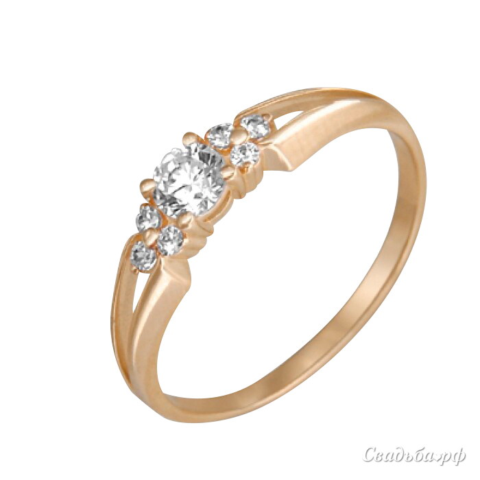 Очаровательное колечко выполнено из оригинального красного золота высочайшей пробы. Изящный ободок раздваивается с обеих сторон от сверкающей вставки бриллиантов. Крупный камень соседствует с шестью бриллиантами более скромного размера – по три с каждой стороны. Такое колечко от ведущих ювелиров никого не оставит равнодушным.