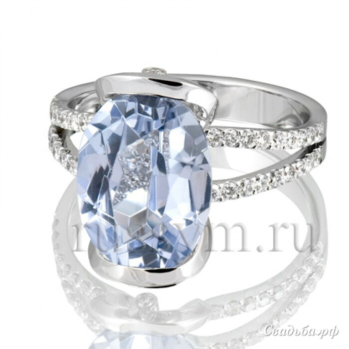 Восхитительное кольцо от ведущих ювелиров России создано для настоящих принцесс. Изящный ободок из белого золота 585 пробы раздваивается и переходит в оправу для огромного топаза нежного синего цвета. Модель дополнена целой россыпью ослепительных бриллиантов безупречной огранки. Эффектный штрих вашего неповторимого образа.