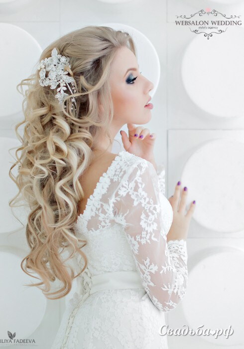 Прическа на свадьбу Свадебная прическа с украшением (W15984)