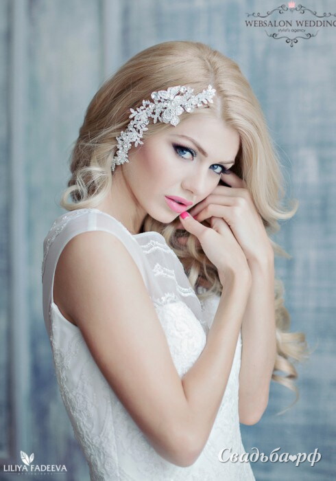 Прическа на свадьбу Свадебная прическа с украшением (W15994)