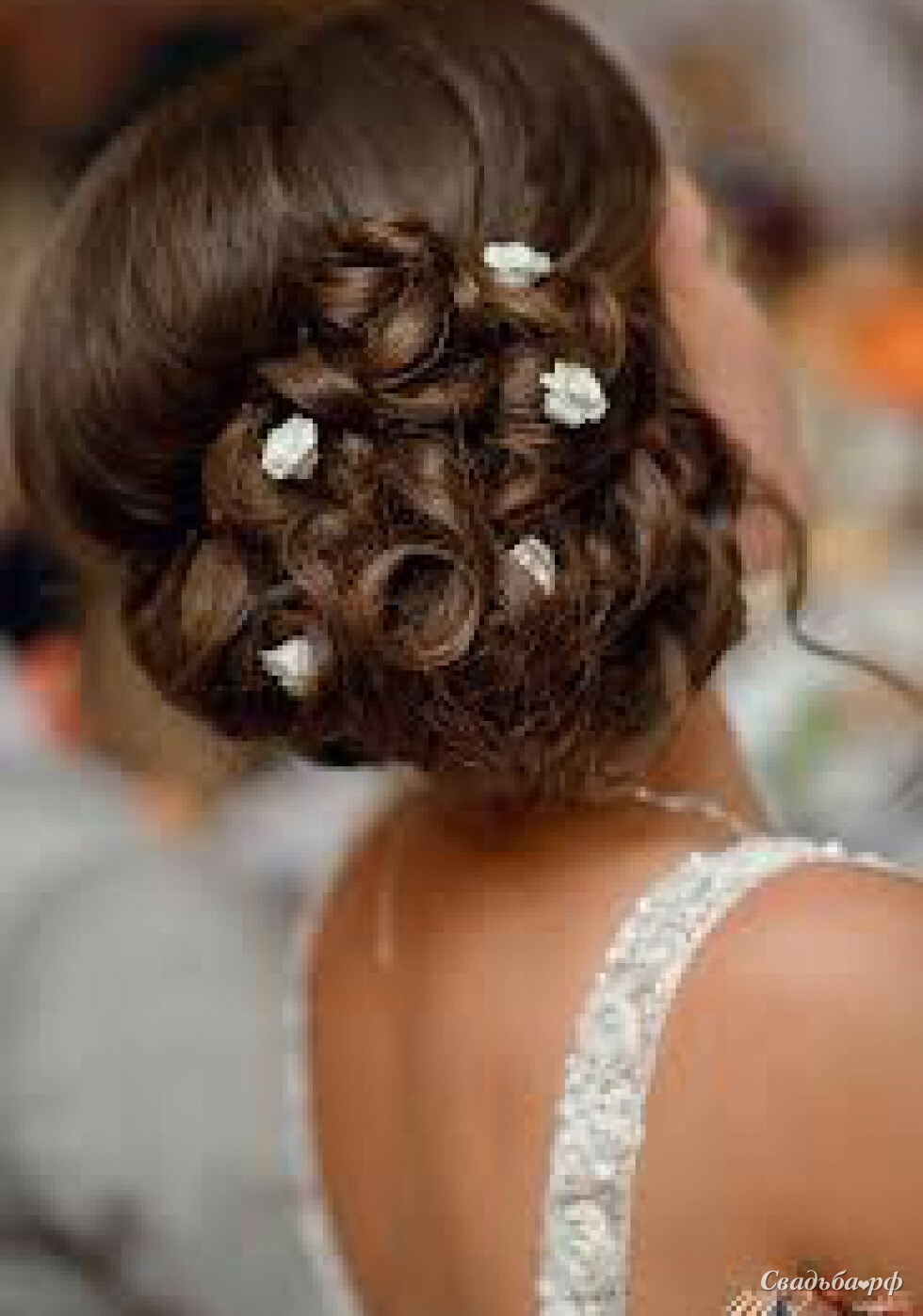 Прическа на свадьбу Пучок на боку с цветами (S17862)