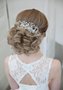 Свадебная прическа - низкий пучок, выполнена из воздушных локонов на средней длине волос. Кудряшки придают дополнительную легкость и воздушность образу невесты. Прическа украшена жемчужным гребнем. С данной прической также может быть использована фата.