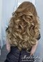 Вечерняя прическа на распущенные длинные волосы выполнена в виде каскада из крупных локонов и позволяет показать всю красоту волос!