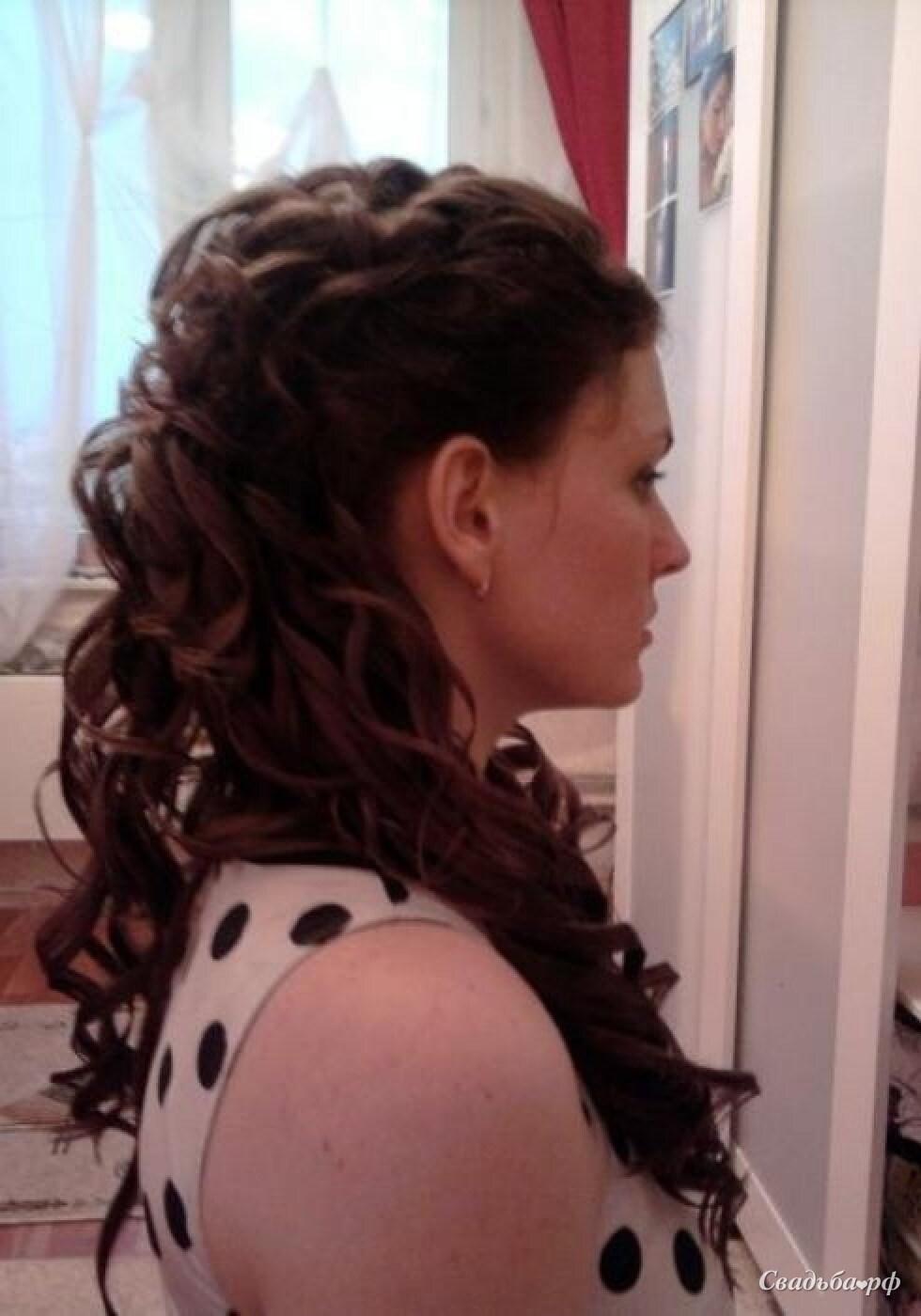 Свадебная причёска в греческом стиле подойдёт обладательницам густых и длинных волос. Пряди зачёсываются вверх и переплетаются между собой. Свободные локоны струятся вдоль спины. Такую объёмную укладку можно украсить бусинами, заколками, живыми цветами или сверкающей диадемой. Причёска подходит практически любому типу лица.