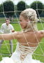 Свадебная причёска в греческом стиле украшена живыми цветами. Такая роскошная модель выполняется на длинных и густых волосах. Пряди зачёсаны назад и искусно переплетены между собой на затылке. Свободные локоны струятся вдоль спины. Причёска особенно гармонично смотрится с овальным или худеньким личиком.