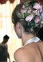 Свадебная причёска с собранными волосами и живыми цветами выполняется на длинных и средних волосах. Пряди зачёсываются наверх и надёжно фиксируются на затылке в объёмную шишку. Несколько изящных локонов, словно выбившихся из общей композиции, придают укладке романтичность и естественность. Отличный вариант для любого личика.