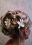 Данная прическа для длинных или средних волос и девушек с овальной, треугольной или грушевидной формами лица. Представляет собой собранные на затылке волосы с крупными переплетенными локонами. Можно использовать живые или искусственные цветы. Отлично подойдет для платьев различных типов – от классических до ретро-стиля.