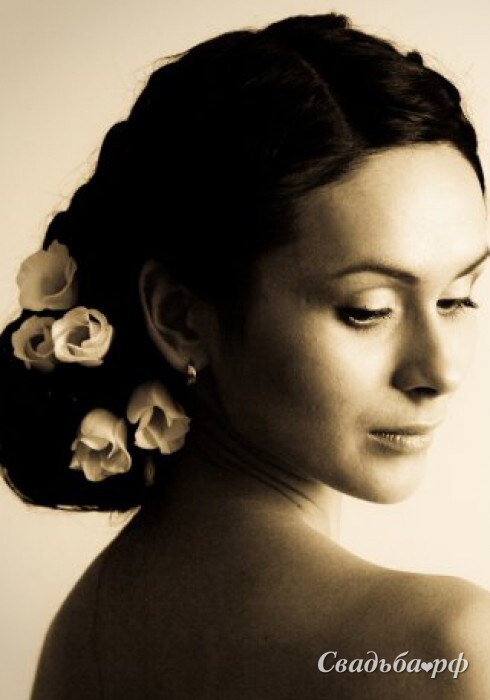 Свадебная прическа Низкий пучок с живыми цветами (С12131)