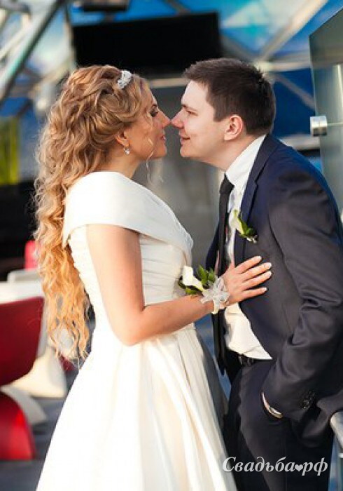 Такая свадебная причёска поможет Вам оказаться в центре внимания. Густые и длинные волосы завиты в изящные локоны, струящиеся вдоль спины. Пряди со лба зачёсаны назад. Лицо обрамляют лёгкие кудряшки, словно выбившиеся из общей композиции. Укладка дополнена сверкающей диадемой. Если Ваши волосы не такие длинные, можно использовать накладные пряди.