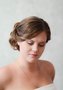 Если Вы хотите создать естественный образ современной невесты, то обратите внимание на эту свадебную причёску. Волосы разделены косым пробором, вдоль лба идёт лёгкое плетение. Пряди собраны сзади в низкий пучок. Низкий пучок с нежными плетениями у лица. Такая причёска подойдёт практически любому типу лица. Макияж выполнен в натуральных цветах.
