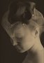 Изысканная свадебная причёска дополнена оригинальной вуалью и крупным жемчугом. Волосы зачёсаны вверх и уложены в крупные локоны. Отличный вариант для волос средней длины. Такая причёска привлекает внимание к личику и зоне декольте невесты. Эффектный образ красавицы начала ХХ века. Будьте загадочной и неповторимый в такой торжественный день!