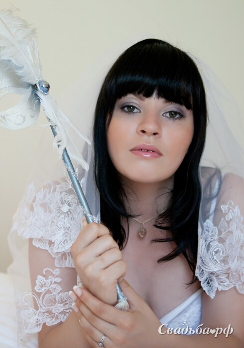 Свадебная причёска с распущенными волосами и густой чёлкой придётся по вкусу ценительницам естественного и романтичного стиля. Такая укладка подойдёт обладательницам блестящей и ухоженной шевелюры. Представленную модель можно дополнить фатой или дизайнерской шляпкой. Универсальный вариант для любой длины волос.