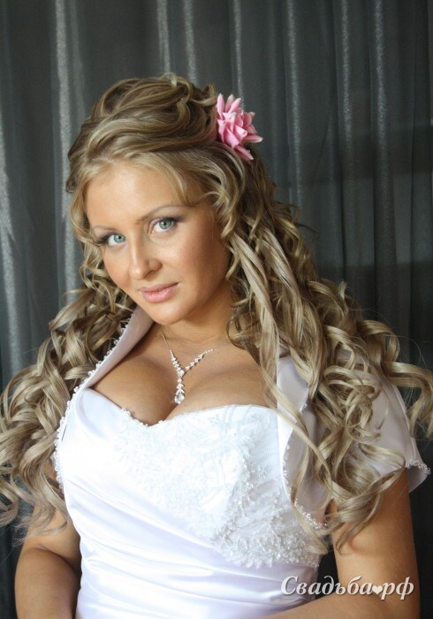 Свадебная причёска в греческом стиле особенно эффектно смотрится на длинных и ухоженных волосах. Каждая прядь уложена в изящный локон. Волосы слегка закреплены на затылке и свободно струятся мягкими волнами на плечи и спину. Такую естественную модель можно украсить живым цветком или несколькими бусинами.