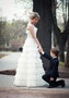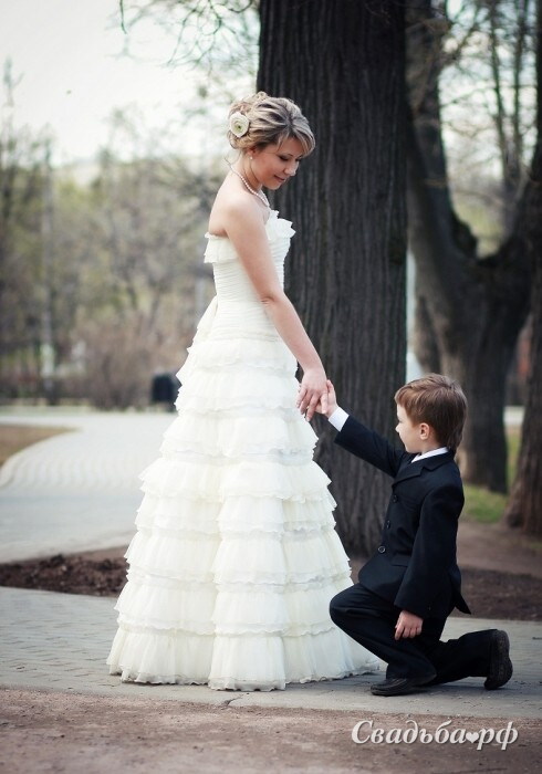 Романтичный и неземной образ прекрасной невесты поможет создать эта свадебная причёска. Волосы легко забраны назад и зафиксированы на затылке в объёмный пучок. Укладка смотрится легко и естественно, словно Вы сами наскоро закололи волосы живым цветком. При этом причёска отлично держится. Длинная чёлка зачёсана чуть на бок.
