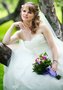 Романтичная свадебная причёска с распущенными волосами поможет создать свежий и очень весенний образ. Пряди слегка забраны назад и зафиксированы невидимками. Чёлка зачёсана набок. Лёгкие локоны ослепительным каскадом падают на плечи и струятся вдоль спины. Причёска дополнена живыми цветами и полупрозрачной фатой. Нежно и стильно.